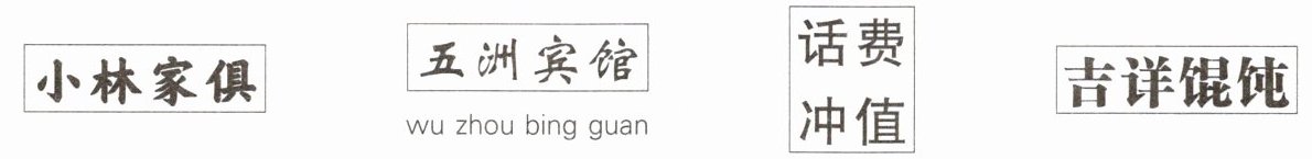 三、请改正路边招牌中的汉字或拼音存在的错误。