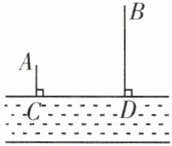 解:作点A关于河岸CD的对称点$A'$,连接$BA'$,与CD交于点E,则点E即为所求水厂位置。