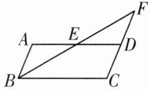1. 如图,在平行四边形$ABCD$中,$E是AD$边上的中点,连接$BE$,并延长$BE交CD的延长线于点F$.