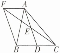 理由:因为 $ AF // BC $,$ AF = BD $,所以四边形 $ AFBD $ 是平行四边形。