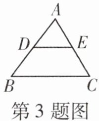 3. 如图所示,在$△ABC$中,点 D,E 分别是 AB,AC 的中点. 若$DE= 3$,则 BC= ____