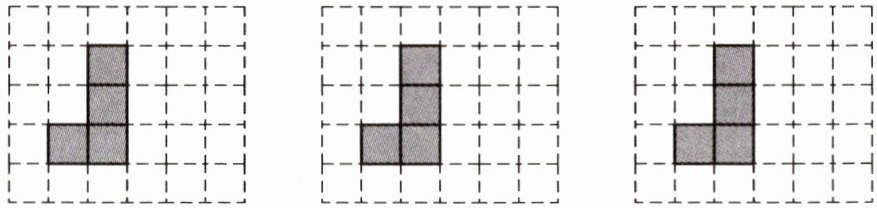 4. 用三种不同的方法,在下面的图形中再添一个小方格并涂色,使涂色部分成为一个轴对称图形。