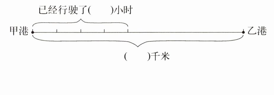 5. 甲、乙两港相距240千米,一艘货船从甲港开往乙港,已经行驶了4小时,剩下的路程比已经行驶的路程多40千米。这艘货船的平均速度是多少?(先根据题意把线段图补充完整,再解答)