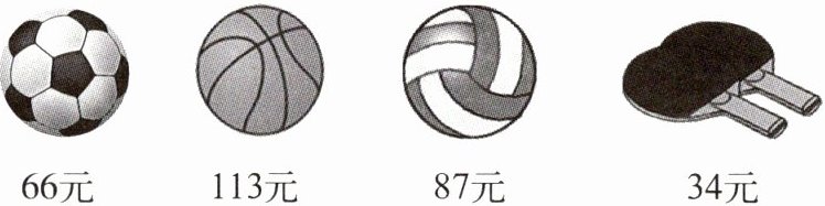 1. 张老师为学校采购下面的体育用品,一共花了多少元?