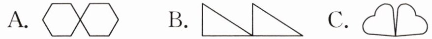 1. 用五个同样大小的正方体摆成右边的物体,画出从前面、右面和上面看到的图形。画出的图形中,哪些是轴对称图形?在$□$里画“√”。