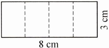【解析】:观察图形可知,长方形被平均分成了$4$份,每份的长度是$8÷4 = 2$厘米。