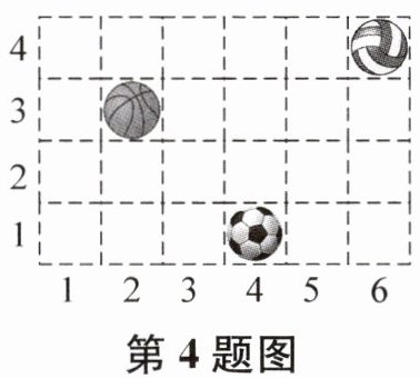 4. 如图,篮球的位置表示为$(2,3)$,足球的位置可表示为(