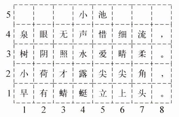 )的位置。(3)诗中两个“尖”字的位置用数对表示分别是(