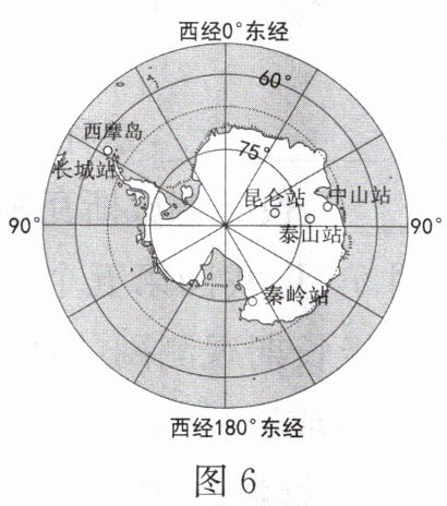 (2024 铜陵期末)2021 年 2 月 9 日,南极西摩岛测得 20.75℃的高温,打破纪录。同期,南极多处出现粉色“西瓜雪”。“西瓜雪”是一种淡水的单细胞绿藻,在低温下保持“冬眠”状态,一旦环境温度合适,它就会开始疯狂生长。读图6,完成9、10题。