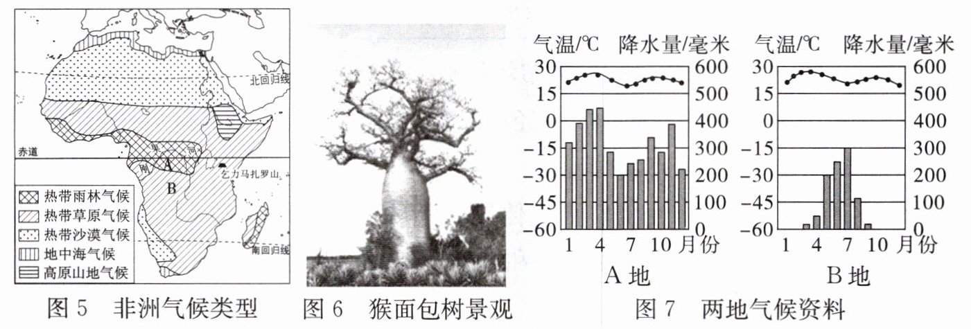 10.(新考法·主题探究)某中学地理学习小组开展了以“非洲太阳能开发利用前景研究”为主题的地理研究性学习活动。图8为非洲气候类型和中国电力企业在非洲投资建设的部分太阳能发电站项目图。请你结合材料,帮助该学习小组完成研究报告。