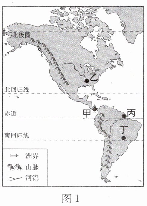地球上总有一些风景,让我们魂牵梦萦。在某片大地上有着世界上最长的山系,巍峨曼延;有着世界上面积最大的热带雨林,郁郁葱葱……读图1,完成1、2题。
