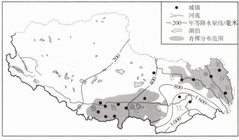 青稞是藏区居民主要粮食,具有高抗氧化性、营养价值高等优点。下图为“西藏青稞主要分布范围示意图”。据此完成1~3题。