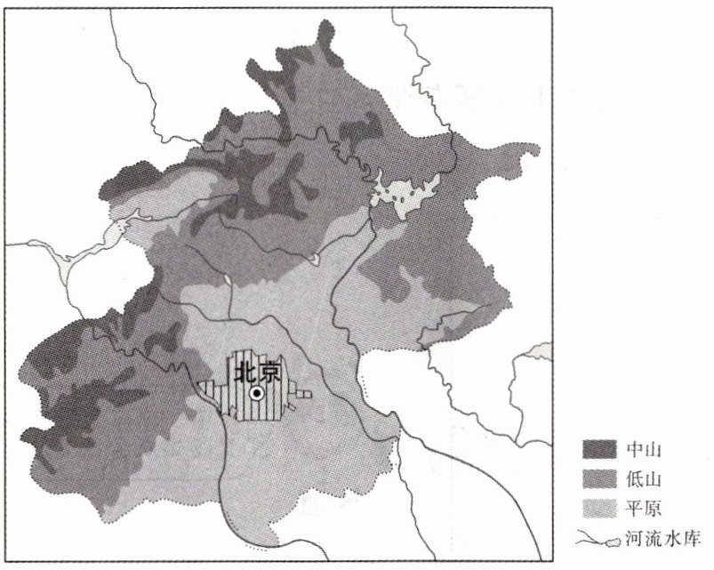第 24 届冬季奥运会于 2022 年 2 月 20 日晚在国家体育场闭幕,北京成为世界首座“双奥之城”。北京冬奥会秉承绿色奥运的理念,主火炬首次实现“零碳”排放。读“北京市地形图”,结合所学知识,完成 1~3 题。