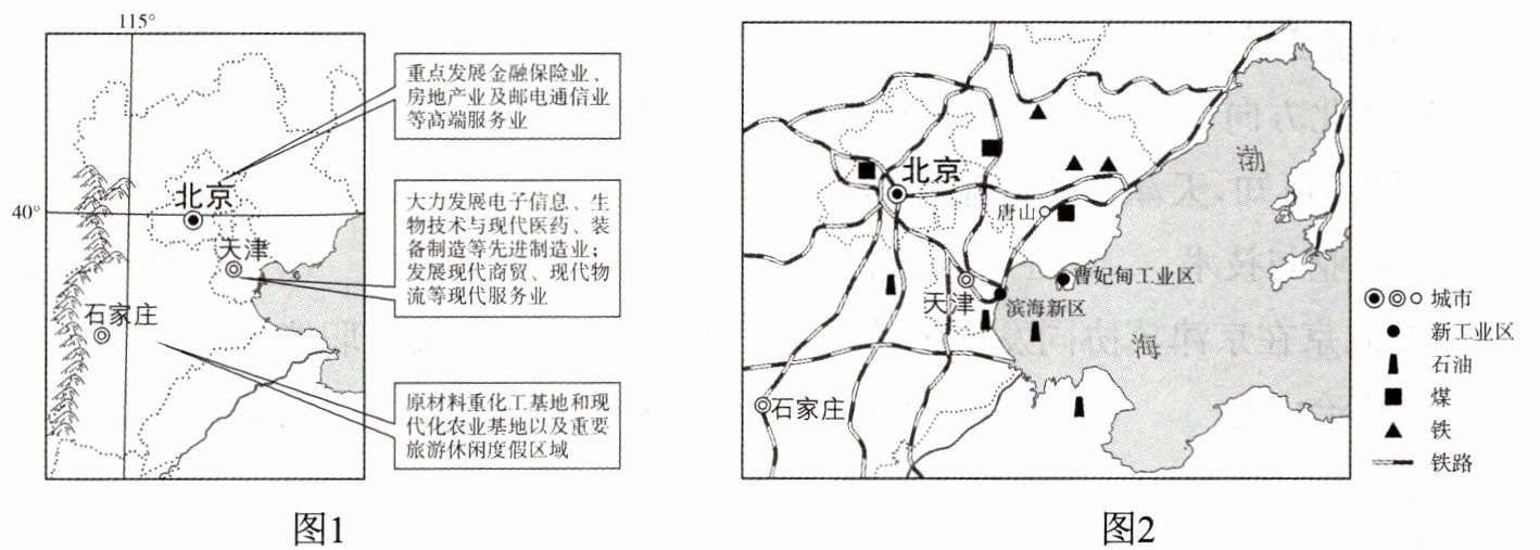 (4)京津冀地区有我国的____工业基地(写名称)。据图 2 中信息分析该工业基地发展的有利条件:____;____(写两条)。