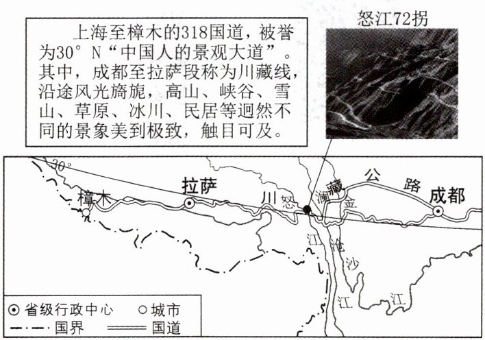 318国道是“西藏自驾游”热门旅游线路。读“318国道(西段)线路示意图”,完成3、4题。