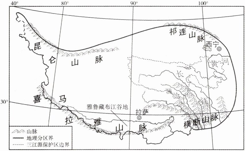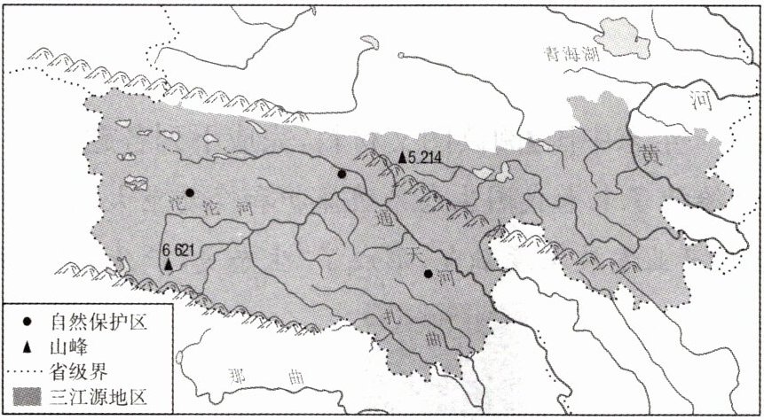 乙同学首批国家公园之一:三江源国家公园。该同学了解到青海省是我国乃至亚洲的生态安全屏障和重要水源涵养地。保护好青海省的生态环境,是“国之大者”。下图示意三江源位置。