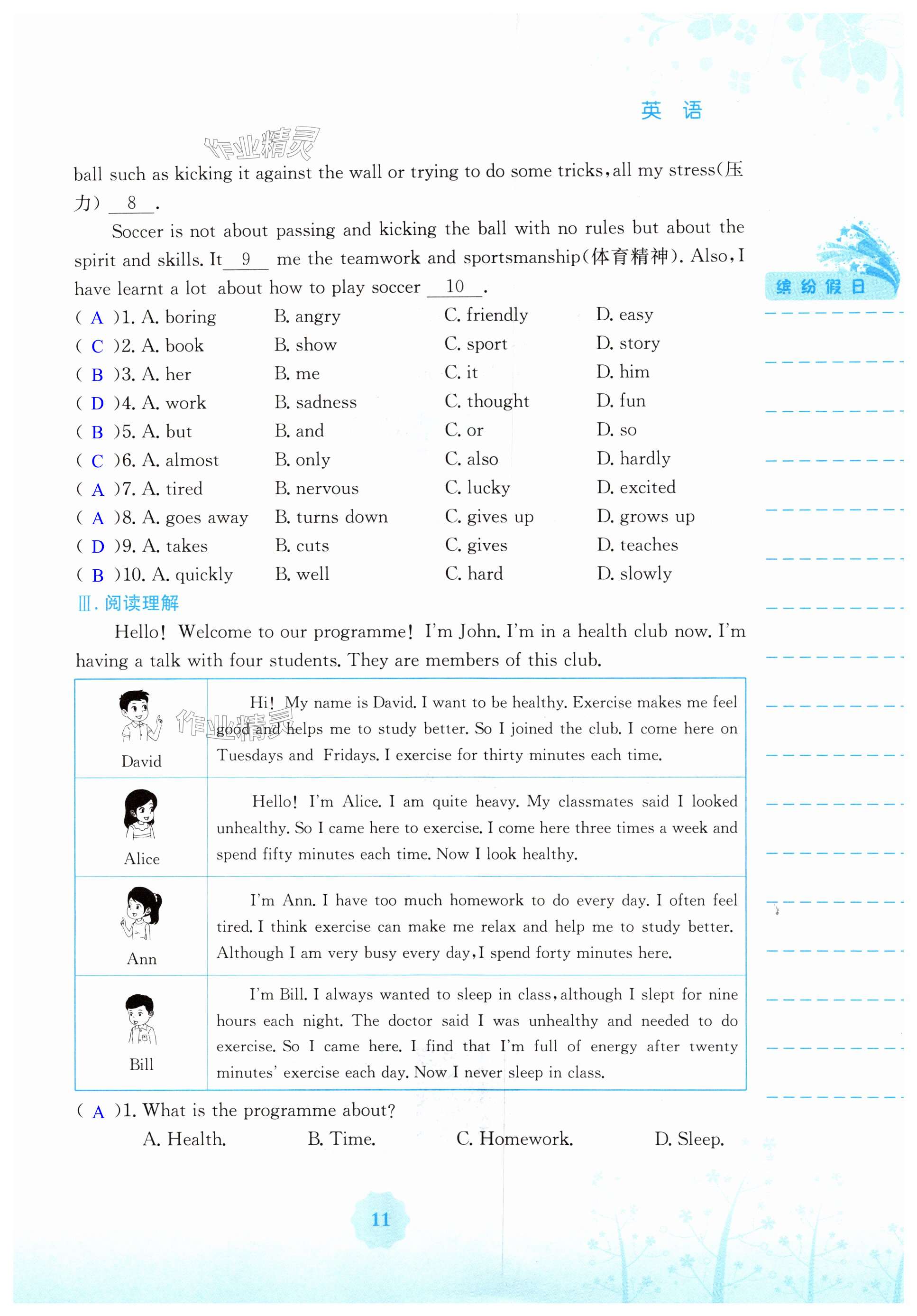 注:目前有些书本章节名称可能整理的还不是很完善,但都是按照顺序排列的,请同学们按照顺序仔细查找。练习册 2025年暑假生活七年级英语人教版安徽教育出版社 答案主要是用来给同学们做完题方便对答案用的,请勿直接抄袭。