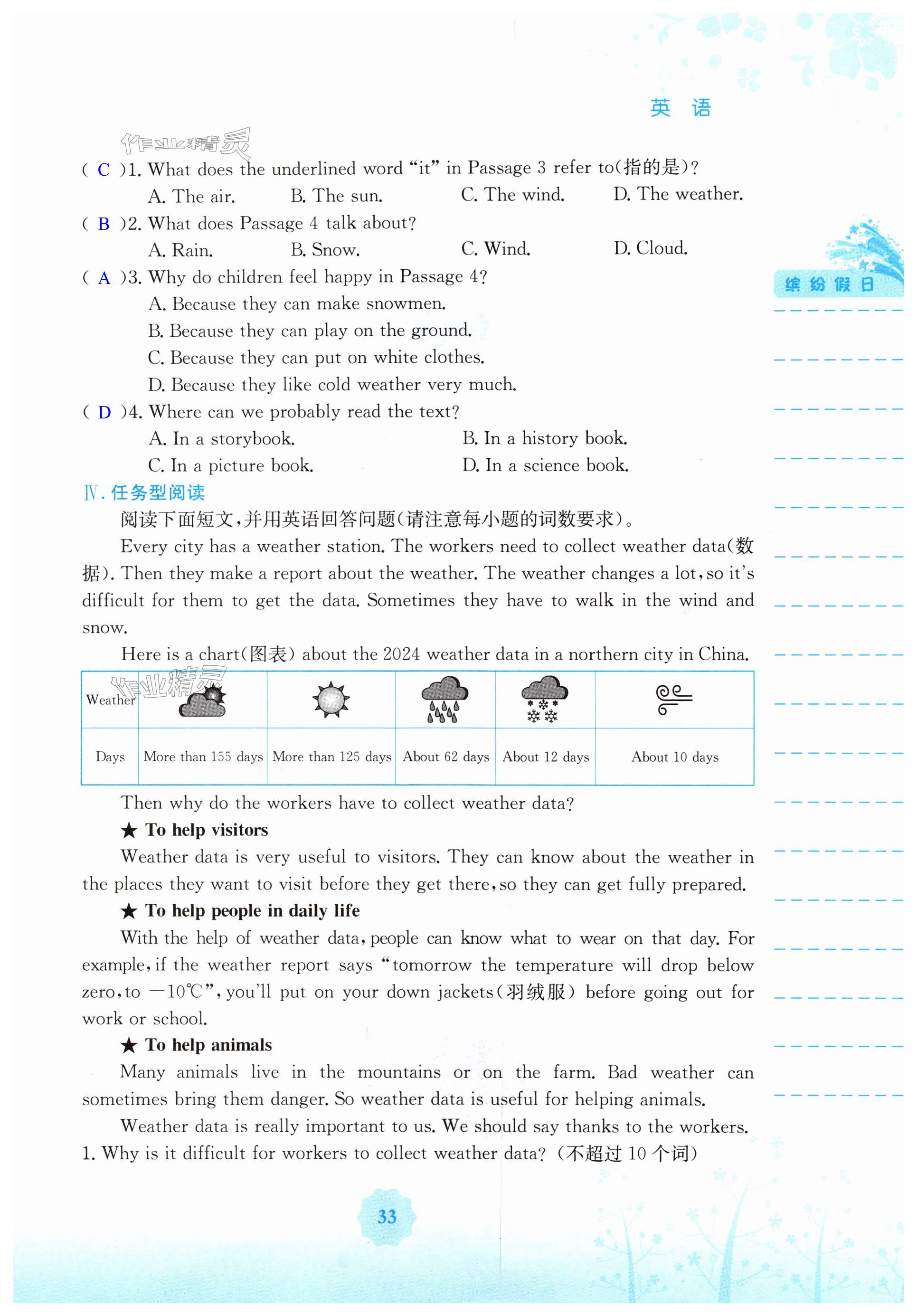注:目前有些书本章节名称可能整理的还不是很完善,但都是按照顺序排列的,请同学们按照顺序仔细查找。练习册 2025年暑假生活七年级英语人教版安徽教育出版社 答案主要是用来给同学们做完题方便对答案用的,请勿直接抄袭。