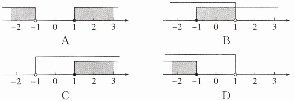 6. 不等式组$\left\{\begin{array}{l} 2x+2≥0,\\ -x>-1\end{array} \right. $的解集在数轴上表示为 (