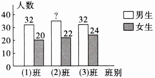 11. 某校七年级三个班男生人数与女生人数的比为 $3:2$,各班的男、女学生人数统计图如图所示,则(2)班的学生人数是____.