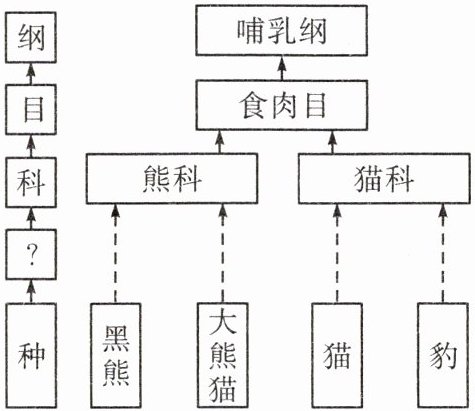 3. 中国国宝、全球“网红”大熊猫在生物分类上的位置如图所示。下列相关叙述正确的是( )。