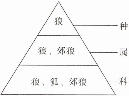 7. (2022·贵阳)右图所示是某同学归纳的狼在部分分类等级中的位置。据图分析正确的是( )。