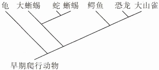 6. 下图表示几种动物的进化历程,据图判断其中与恐龙亲缘关系最近的爬行动物是( )。