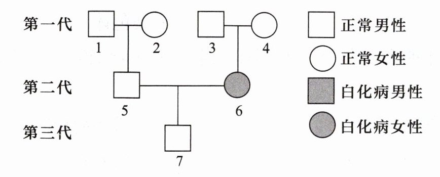 (3)第一代 3 号和 4 号夫妇的肤色正常,而他们的女儿表现为白化病,这种现象称为变异。这种变异是由______的变化引起的,称为______变异。从理论上判断 3 号个体的基因组成是______。