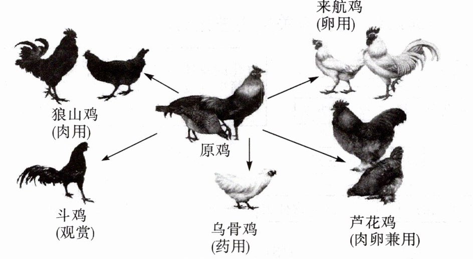 7. 下面为原鸡的进化示意图,对此分析正确的是( )。