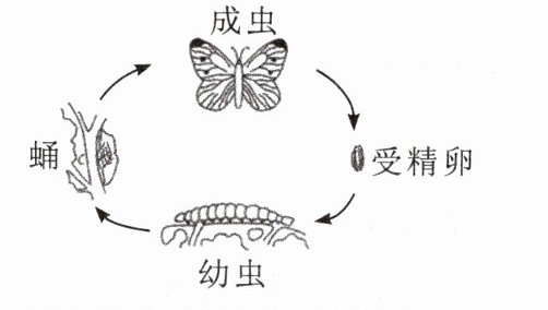 4. (2021·长沙)《昆虫记》详细描述了卷心菜毛虫的生长发育过程。根据下列描述,能判断卷心菜毛虫为完全变态发育的是( )。