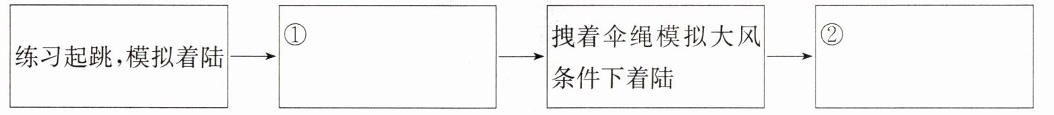 练习起跳,模拟着陆→①________→拽着伞绳模拟大风条件下着陆→②________