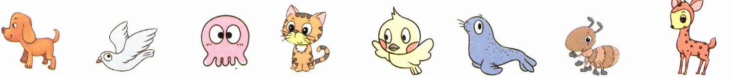 2. 在会飞的动物下面画“□”,在水里游的动物下面画“○”,在地上跑的动物下面画“△”。