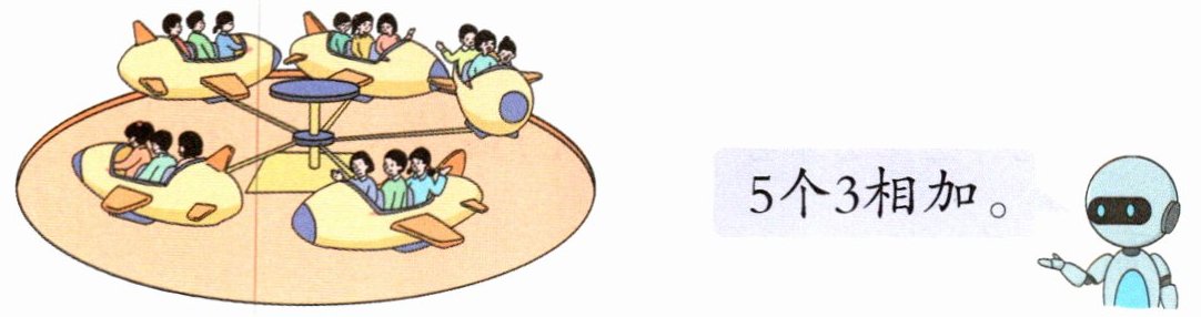 方法三:把每架小飞机里的人数加起来,$3+3+3+3+3= $(