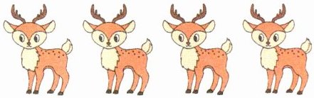 提示每只鹿有 2 只耳朵,已知有 4 只鹿,要求鹿耳朵的总只数,就是求 4 个 2 是多少,根据乘法的意义,用乘法计算。