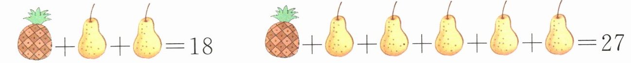 3 提示通过对比两个式子,找出水果数量的差异,从而确定一个梨代表的数。