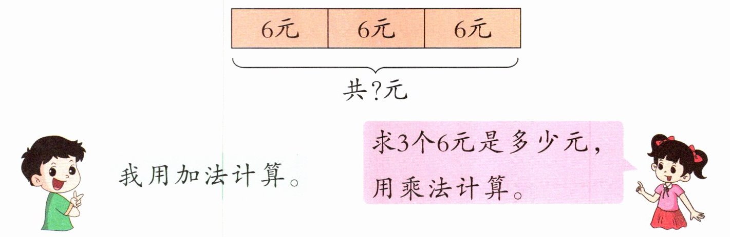 完全解答 $6+6+6= 18$(元)或$6× 3= 18$(元)