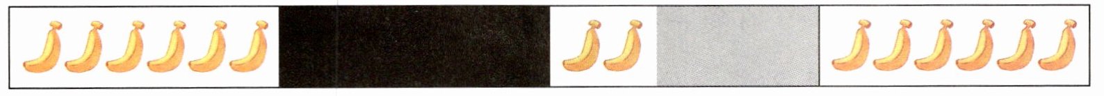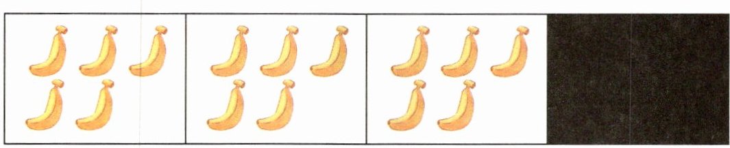3. 下面是小兰分香蕉的情况。最后一个格子被涂黑了。