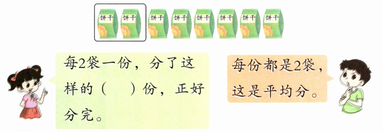 完全解答 8袋饼干,每2袋一份,能分成4份。
