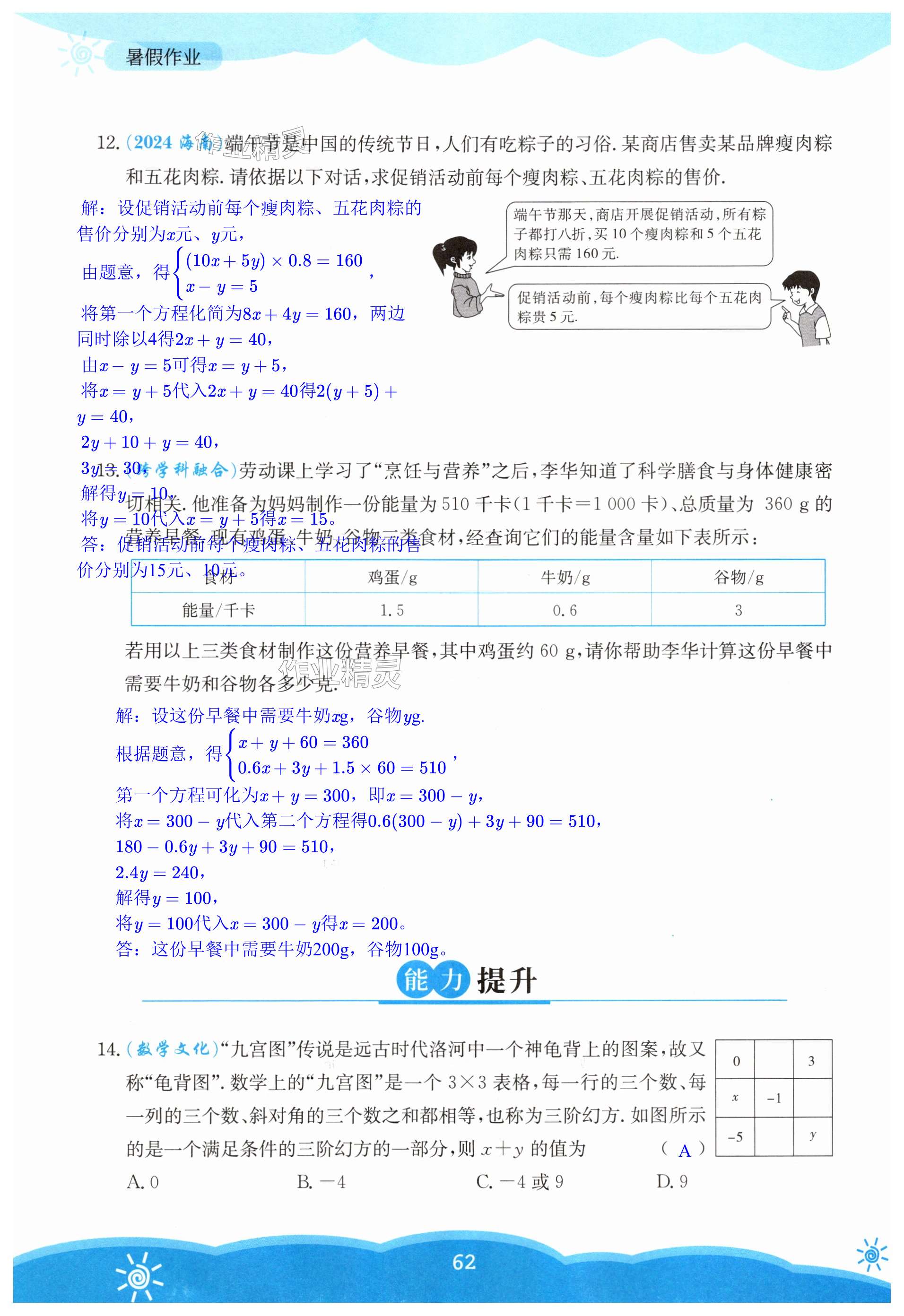 2025年暑假作业安徽教育出版社七年级数学人教版