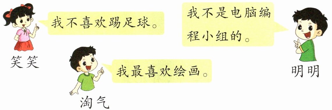 1. 学校开展了足球、绘画和电脑编程的延时服务课。淘气、笑笑和明明分别参加了其中的一个小组。