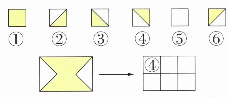 2. 下面的图案分别是由①~⑥号小图形通过平移得到的。在空格内填入相应图形的编号。(每个图形可以重复使用)