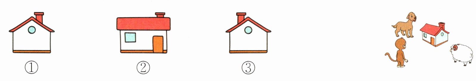 (4)小狗看到的是图(),小猴看到的是图(),小羊看到的是图()。