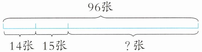 完全解答 $96 - 14 - 15 = 82 - 15 = 67$(张)或 $96 - (14 + 15) = 96 - 29 = 67$(张)