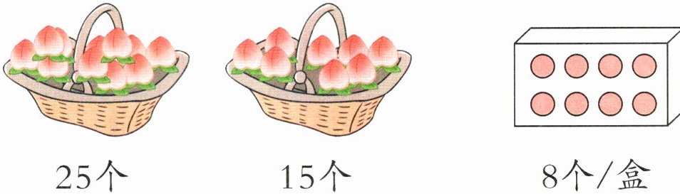 $25 + 15 = 40$(个)桃子,再算能装几盒,用除法计算。据此列综合算式。