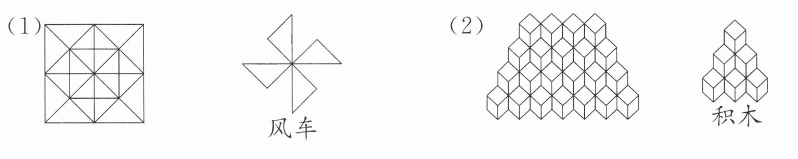 四、新考法 图中找图 在下面的每幅图中找出右边的图形,用彩笔涂一涂。