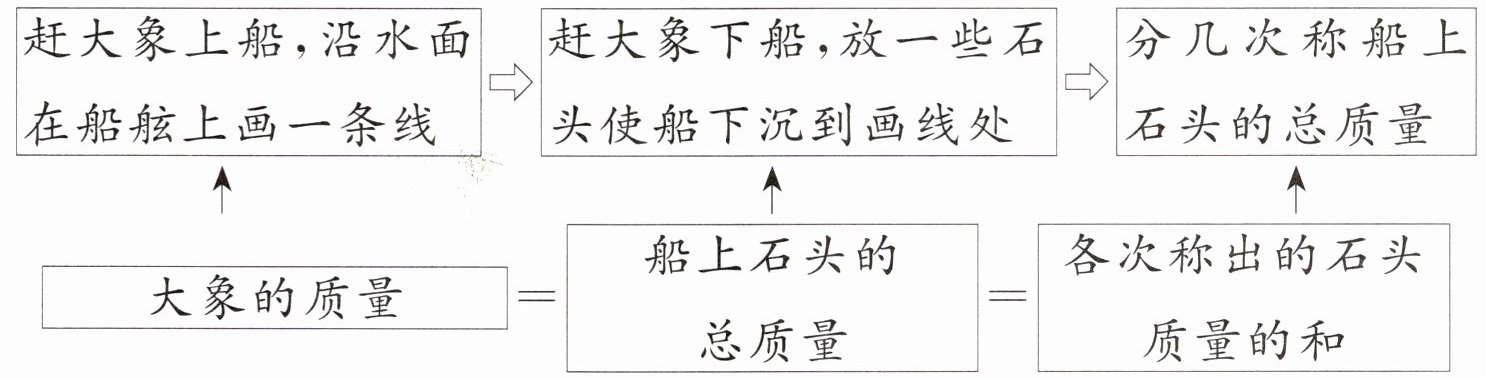 过程探索 (1)大象的体重也叫作大象的质量。以下是曹冲称象的步骤和方法。