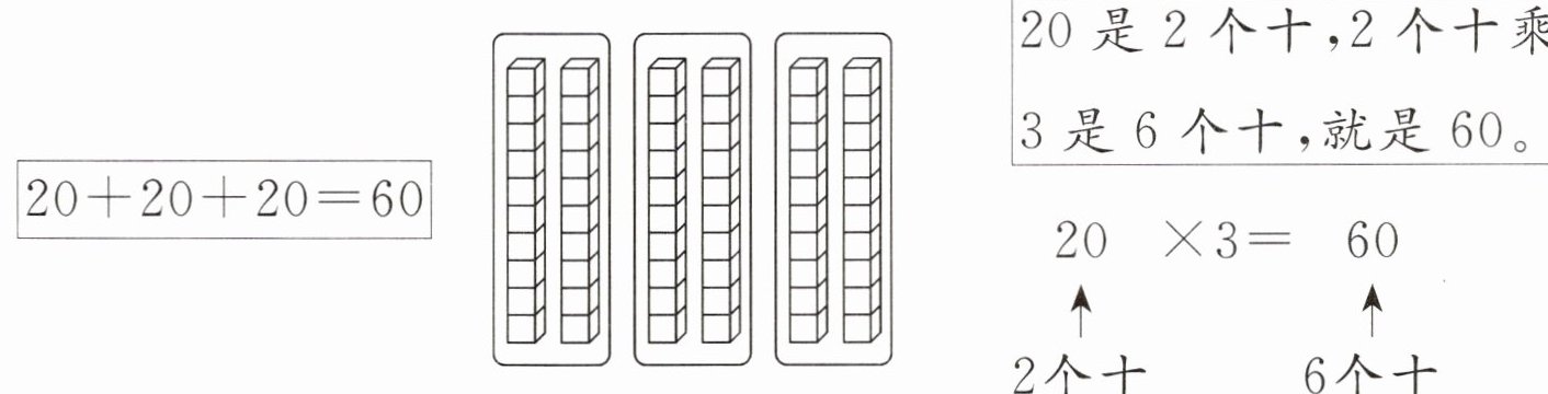 (1)利用表内乘法口算。20表示2个十,借助图表示如下: