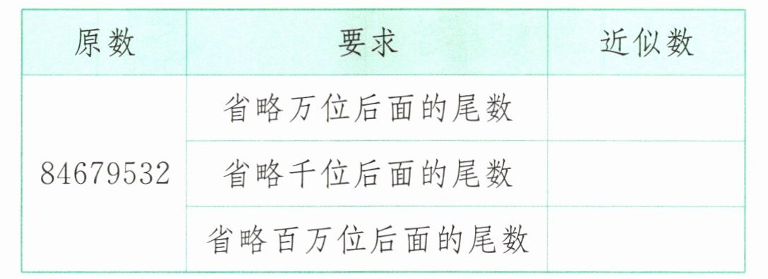 (2)用“四舍五入”法省略万位后面的尾数,求它们的近似数。