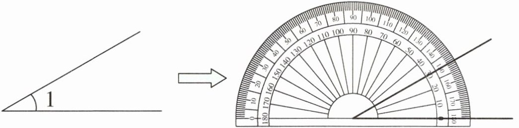 例2 怎样用量角器量出例1中$∠1$的度数?