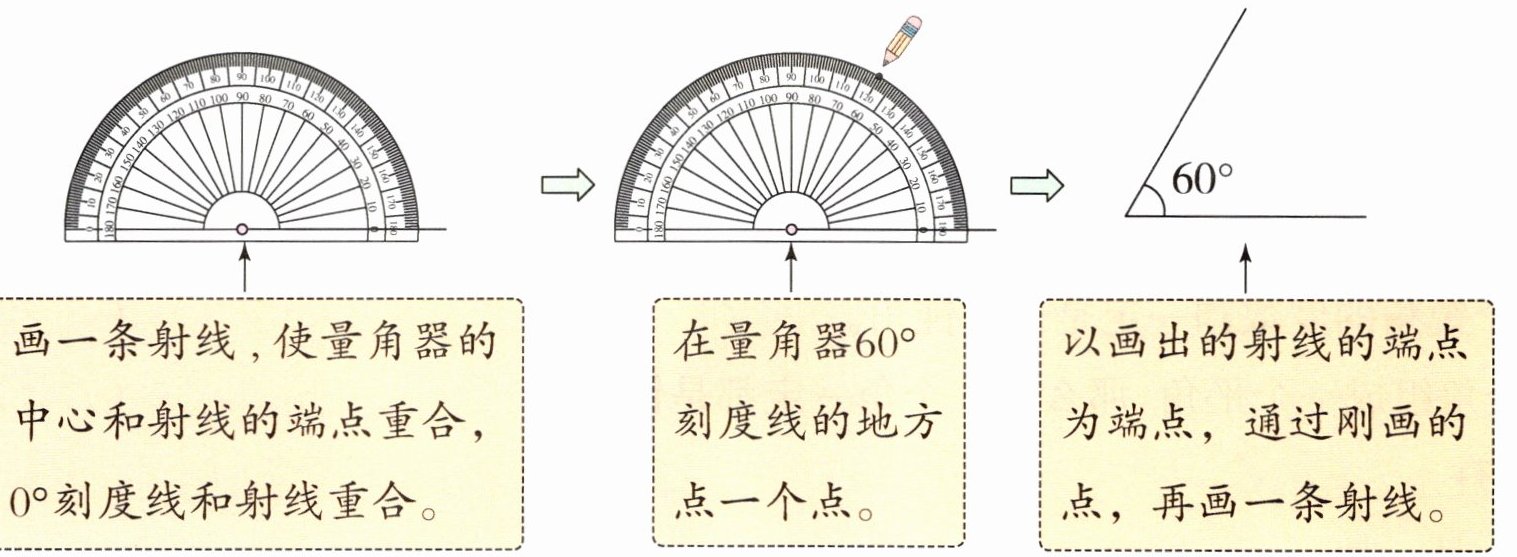 过程探索 方法一:用量角器画$60^{\circ }$的角。